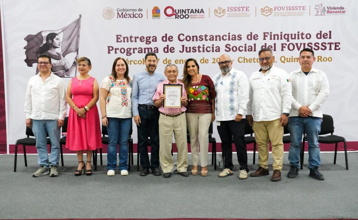 En un acto que representa alivio financiero, certeza patrimonial y justicia social para cientos de familias, se llevó a cabo la Asamblea de Entrega de Constancias de Finiquito del Programa de Justicia Social del FOVISSSTE, en el Centro de Convenciones de Chetumal.