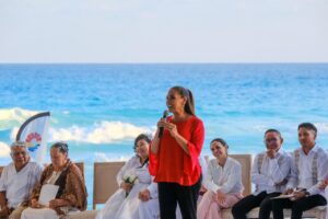 En el mensaje que dirigió a las y los contrayentes, la gobernadora Mara Lezama recordó que cuando fue presidenta municipal de Benito Juárez decidió que las bodas colectivas se hicieran en la playa, frente al mar, pues las playas son de todos y no de unos cuantos.