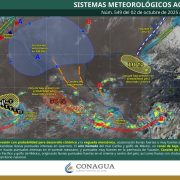 Al sur, el paso de la onda tropical núm. 25 y el ingreso de aire húmedo del Pacífico provocarán lluvias intensas en Jalisco y muy fuertes en Michoacán y Colima, mientras que en el sureste, la llegada de la onda tropical núm. 26 a la Península de Yucatán generará tormentas en Chiapas, Tabasco, Oaxaca, Veracruz, Campeche, Yucatán y Quintana Roo.