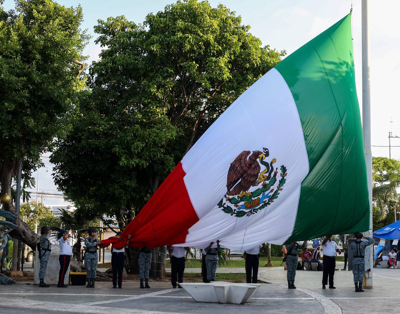 En este importante evento se entonó con orgullo las notas glorioso Himno Nacional Mexicano y de Quintana Roo; además la escolta y banda de guerra de la Guardia Nacional participaron en los honores a la bandera nacional, así como los elementos de la dirección del Heroico Cuerpo de Bomberos, Rescate, Emergencias Médicas y Desastres.