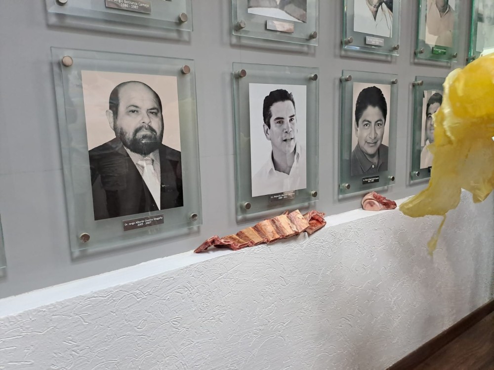 La ahora ex priista sacó de una bolsa varios pedazos de huesos y se las entregó a los priista que se encontraban ahí.