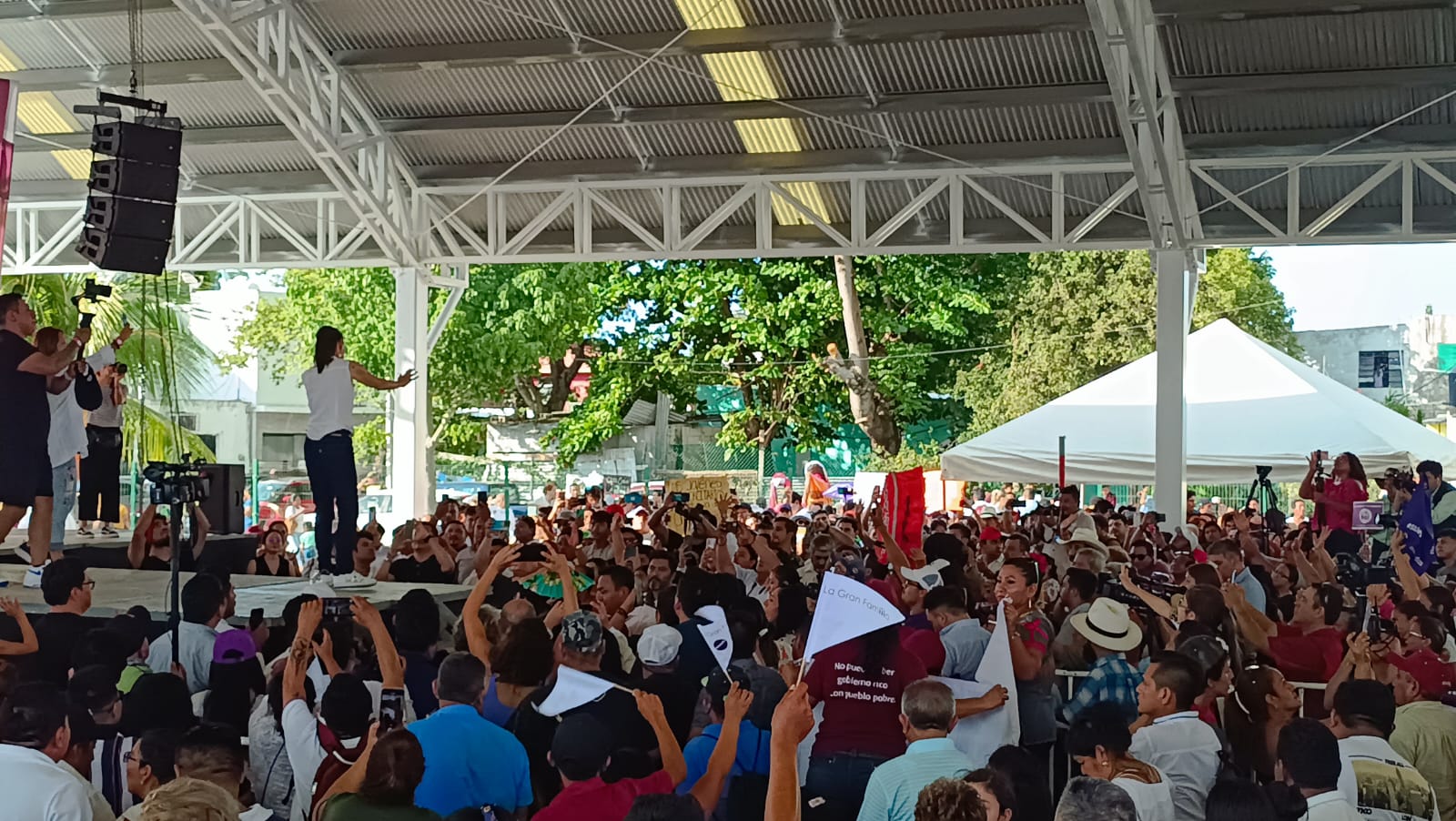Acarreados en la asamblea informativa de Claudia Sheinbaum Pardo en Ciudad del Carmen