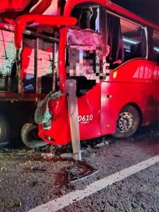Según los primeros informes de las autoridades, el conductor del autobús no pudo percatarse del camión estacionado, lo que provocó el fuerte impacto. Como consecuencia, dos personas perdieron la vida, y más de 20 pasajeros resultaron heridos, algunos de ellos con lesiones graves.