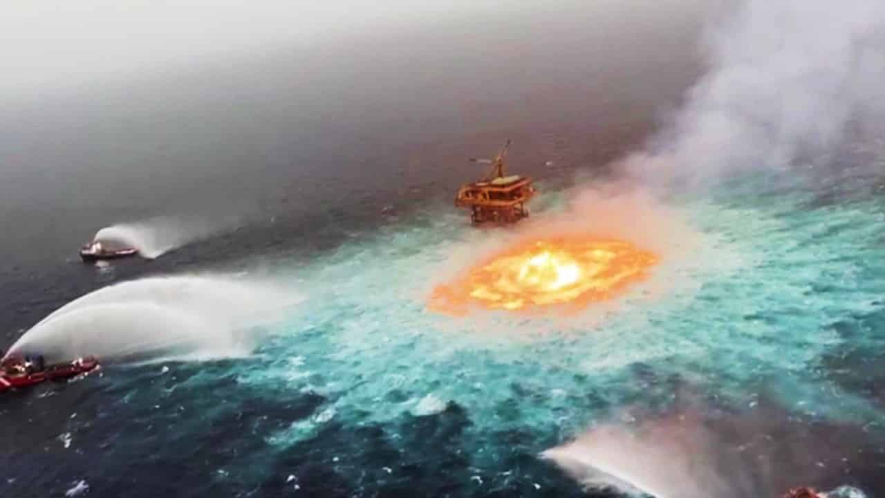 El 7 de julio de 2023: La plataforma de Pemex Nohoch-Alfa del activo de producción marina Cantarell, ubicado en la Sonda de Campeche, registró una explosión.