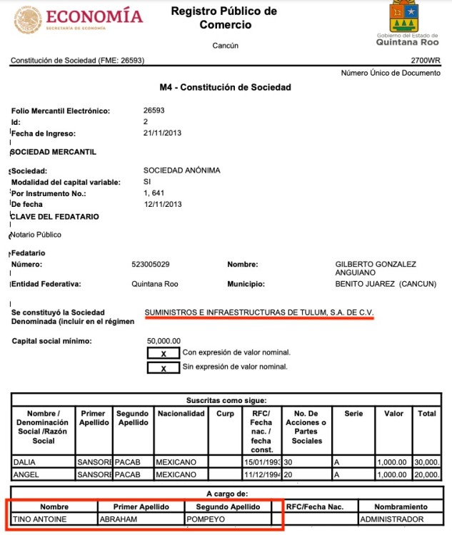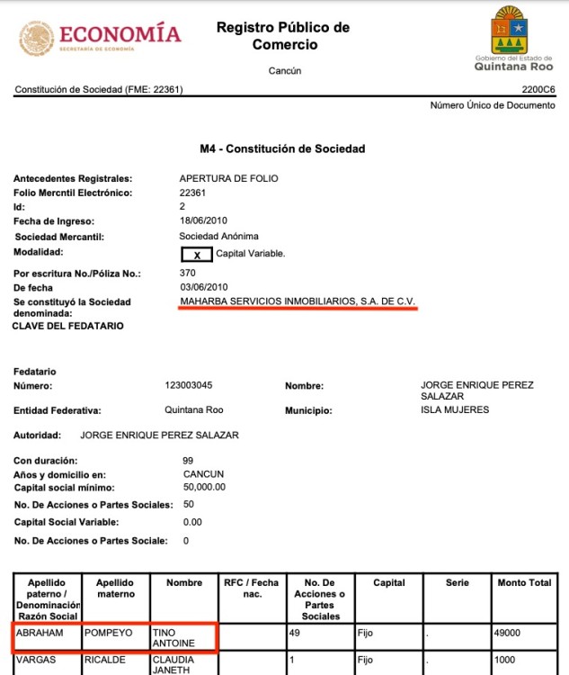 MAHARBA Servicios Inmobiliarios SA de CV y Suministros e Infraestructuras de Tulum SA de CV, ambas empresas ligadas a Tino Antoine Abraham Pompeyo, acaparan contratos en Playa del Carmen