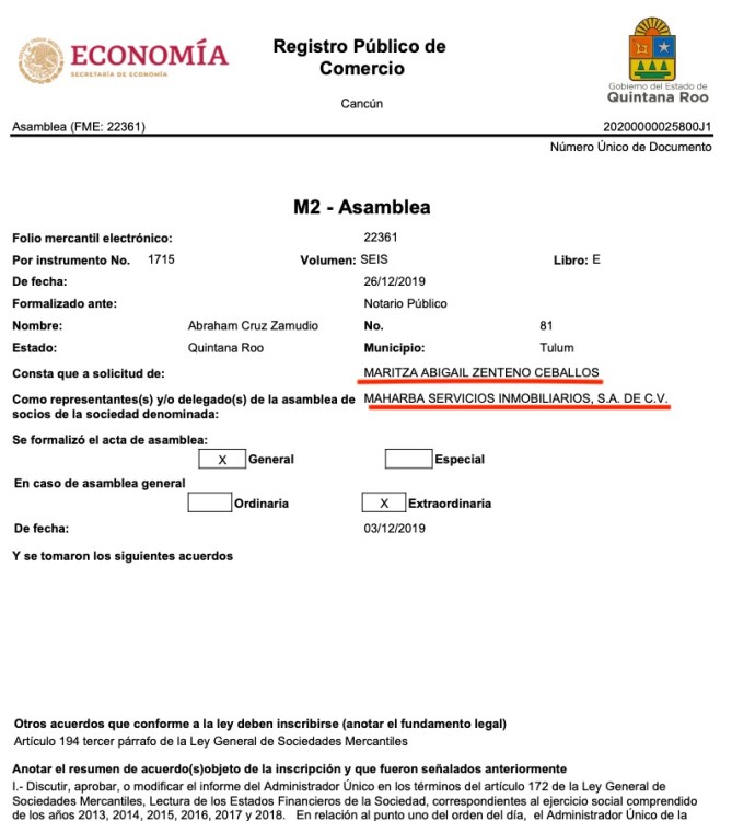 Ambas empresas no solo tienen a Tino Antoine Abraham Pompeyo en común, sino también el de Maritza Abigail Zenteno Ceballos, quien tuvo amplio poder en ambas empresas para pleitos y cobranzas, incluso es la persona que firma el contrato por parte de MAHARBA de la llamada carretera ‘Chueca’. Según una investigación al Registro Nacional Profesional, posee el título de técnico superior universitario en