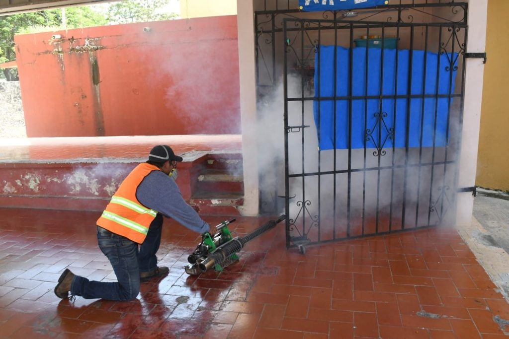 A través de la Coordinación de Escuelas, la comuna reforzó la fumigación y limpieza integral en planteles escolares de educación básica. La finalidad es combatir la reproducción del mosco transmisor del dengue.