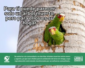 En plena temporada reproductiva de loros, diversas asociaciones de conservación han alertado sobre la importancia de preservar los árboles muertos en la zona urbana de Mérida.