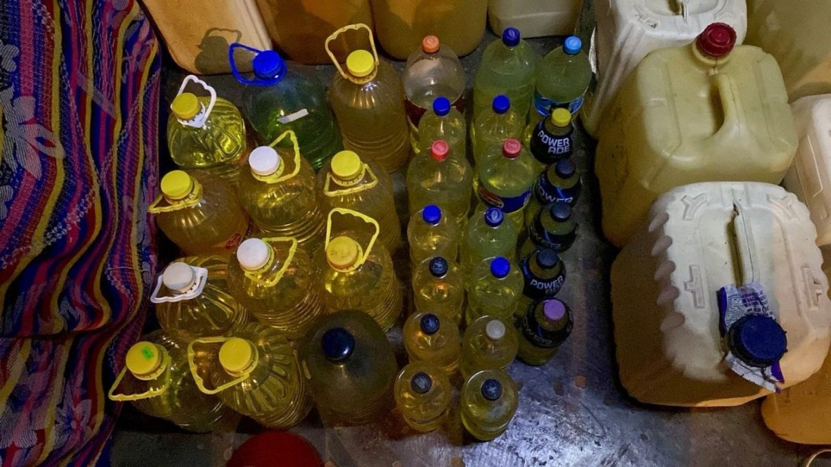 En los predios, se logró el aseguramiento de 23 mil 058 litros 584 mililitros de hidrocarburo distribuidos en bidones y recipientes de diferentes tamaños. Así como la detención de ocho personas.