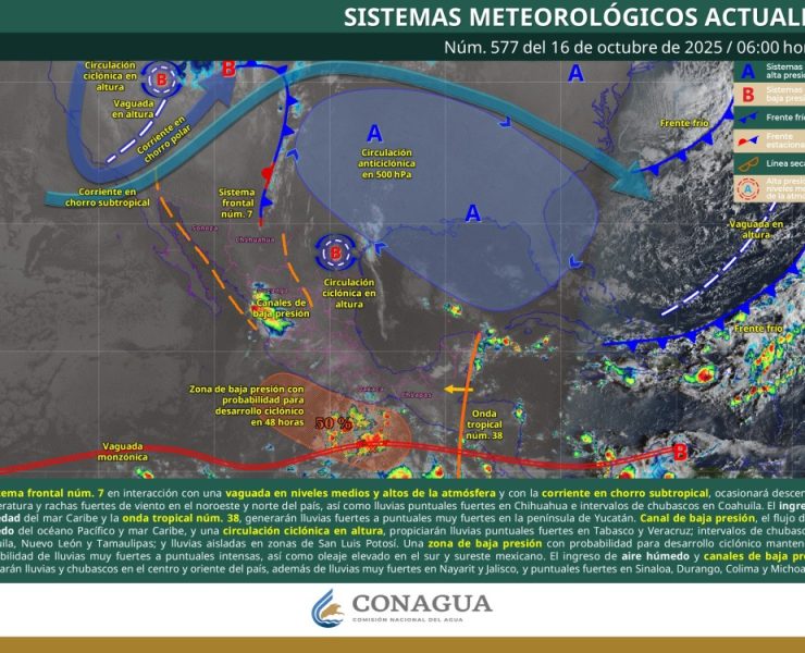 Para hoy, el sistema frontal núm. 7 se extenderá con características de estacionario sobre el norte…