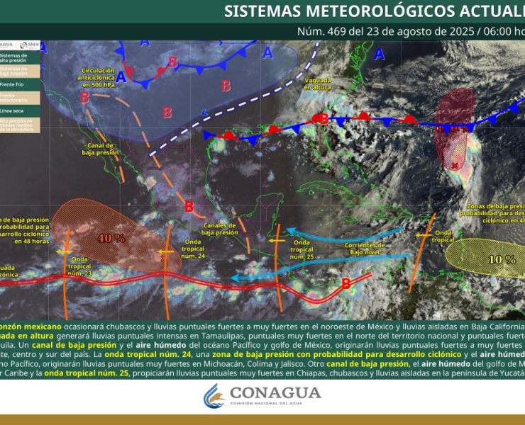 Para hoy, el monzón mexicano e inestabilidad atmosférica en el noroeste del país, ocasionará lluvias puntuales muy fuertes en…