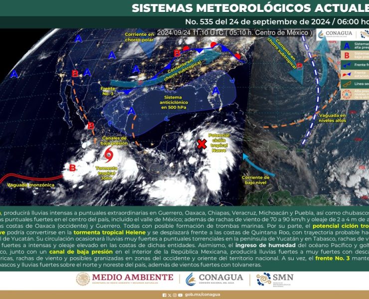 Asimismo el Ciclón Topipical 9 provocará lluvias torrenciales en la península de Yucatán El Servicio…