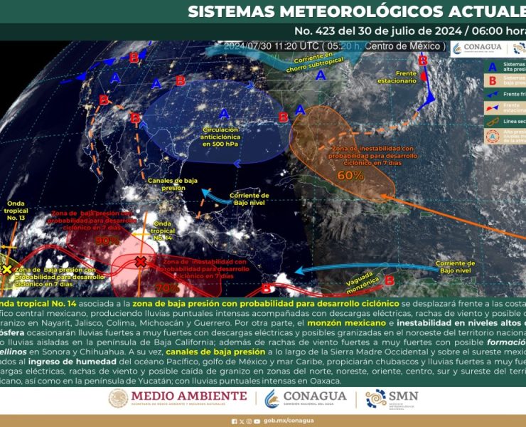 El Servicio Meteorológico Nacional (SMN) prevé para este día, la onda tropical No. 14 asociada a la zona…