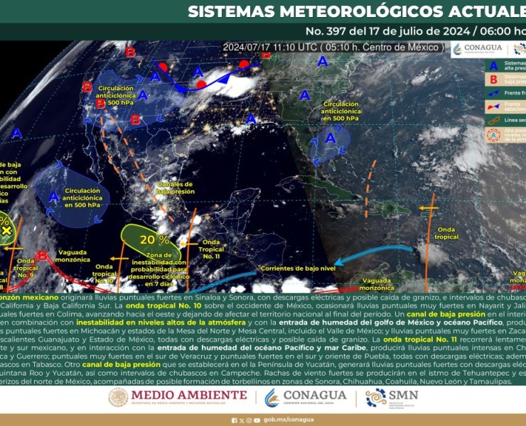 El Servicio Meteorológico Nacional (SMN), prevé que este día, la onda tropical No. 10 se desplazará frente…