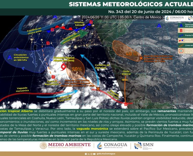 El Servicio Meteorológico Nacional (SMN) prevé que para este día, el ciclón tropical Alberto se debilitará gradualmente…