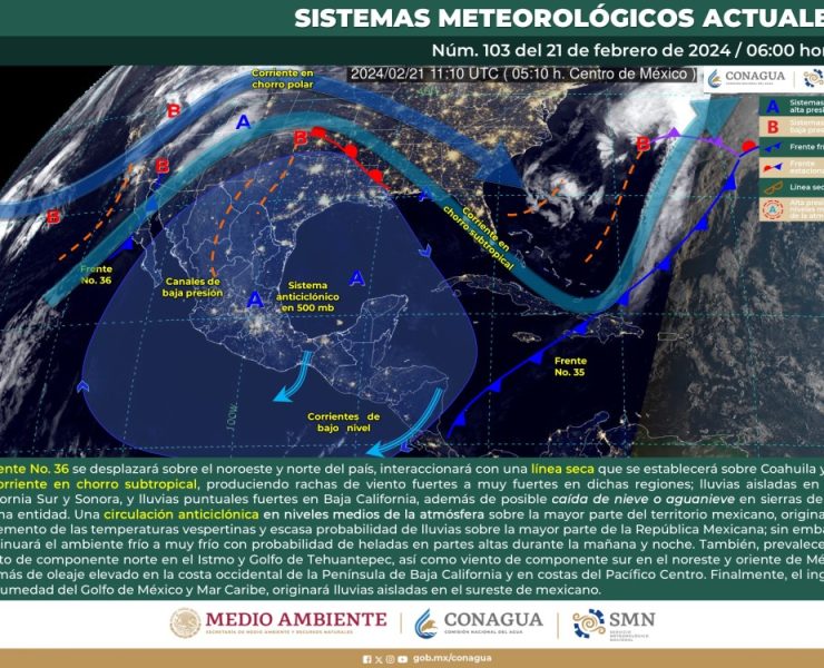 El Servicio Meteorológico Nacional (SMN) prevé qua para hoy frente No. 36 se localiza sobre los estados…