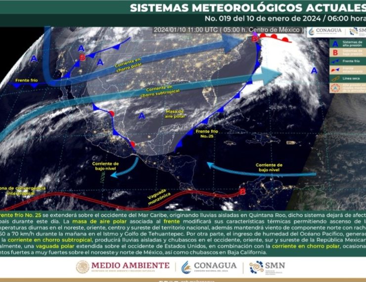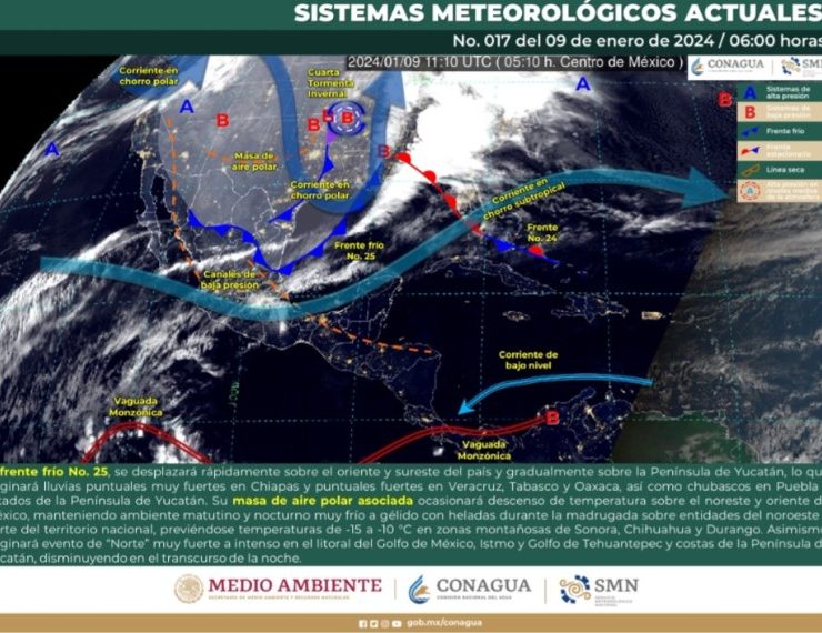 El Servicio Meteorológico Nacional (SMN), prevé para este día que, el frente frío No. 25 se…