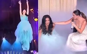 Caída en vivo en concurso de belleza durante un reto extremo en vivo
