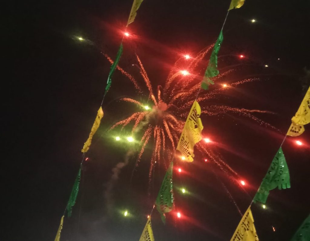 Al momento de las mañanitas se quemaron fuegos artificiales que adornó la oscuridad de la noche, evento religioso que año con año celebran cientos de carmelitas quienes visitan la capilla de Juan Diego.