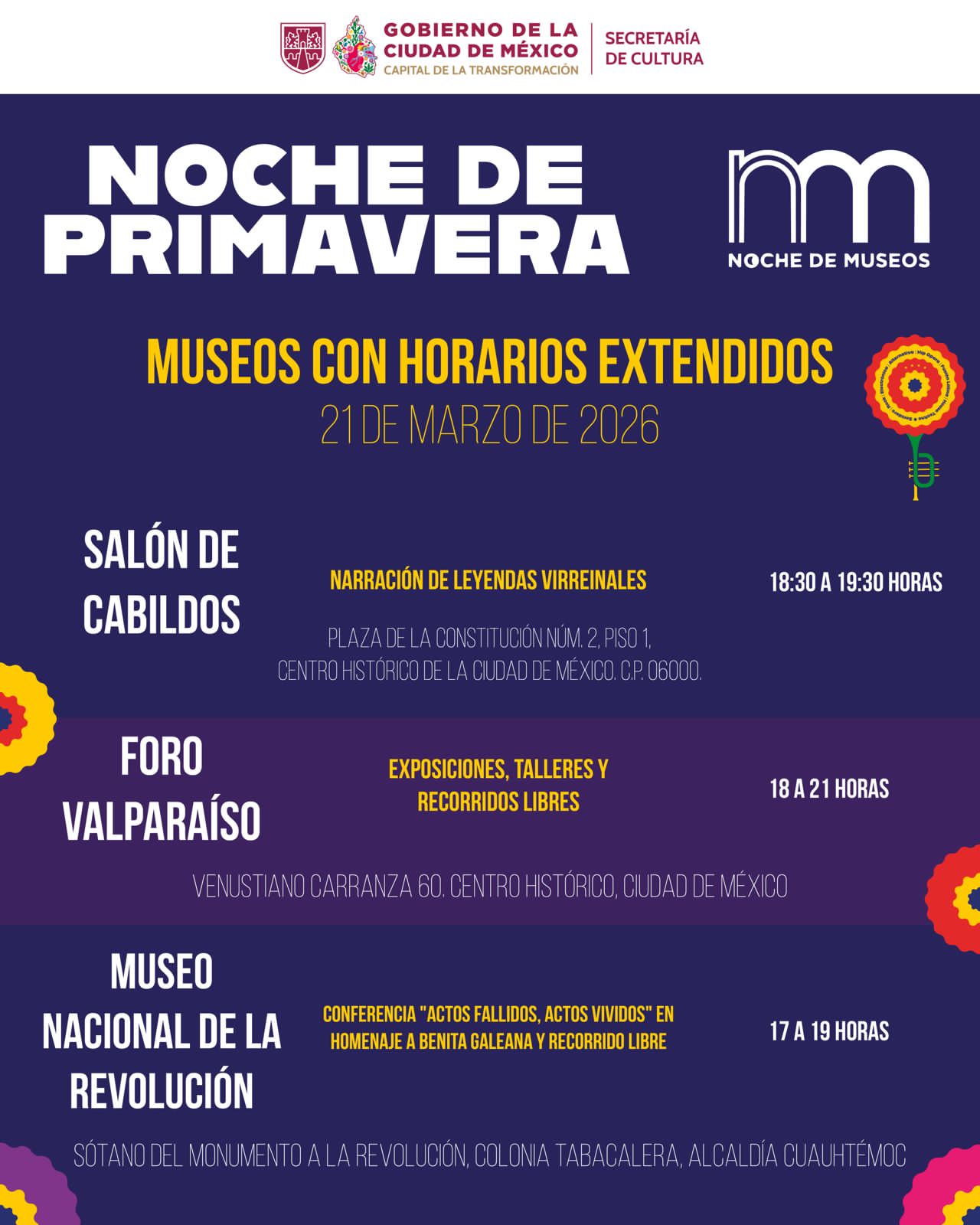 Organizado por la Secretaría de Cultura de la ciudad de México, el festival se desarrollará este sábado 21 de marzo desde las 11:30 horas y se extenderá hasta la madrugada del domingo, con actividades simultáneas en siete puntos emblemáticos de la capital.