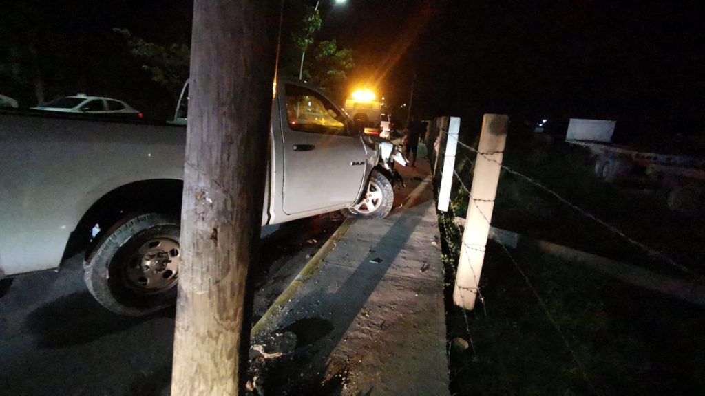 El poste terminó partido en dos en medio de la avenida, mientras que la camioneta sobre la banqueta.