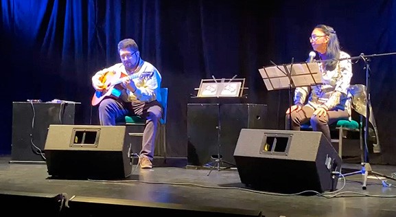 Fue emocionante sentirme entre bambalinas, con las luces lloviendo sobre nuestras cabezas, la mía y la del guitarrista Hernán Alonso, quien me acompañó en la aventura que significó leer para los estudiantes de la UAMI, quienes ocuparon las butacas desde antes de dar la primera llamada; otros, a partir de la segunda, y algunos más, simultáneamente, al dar la tercera. La guitarra —protagonista— desplazó al silencio.