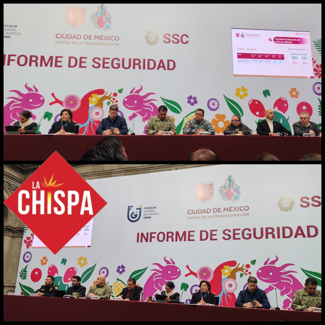 Durante su mensaje en el Palacio del Ayuntamiento, Brugada destacó que el robo de vehículo, uno de los delitos más sensibles para la población, ha disminuido 55 por ciento desde 2019 y 12 por ciento en comparación con 2024, mientras que los homicidios dolosos bajaron 9 por ciento en el último año.