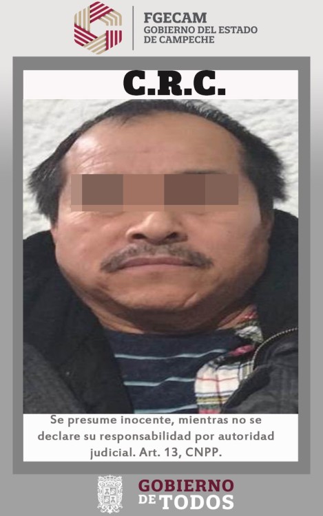 La Fiscalía General del Estado de Campeche (FGECAM), dio a conocer que el Juez de Control del Primer Distrito Judicial vinculó a proceso a C.R.C.. Detenido mediante orden de aprehensión en el condado de Pottawattamie, Council, Bluffs, Iowa, E.E.U.U. por el delito de abigeato.