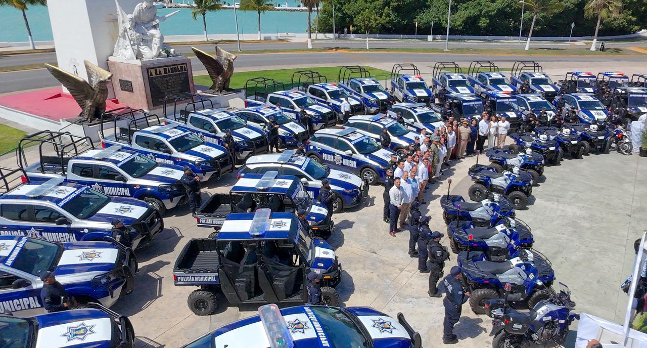 De acuerdo con la Secretaria de Gobierno, Cristina Torres Gómez, entre lo que se entrega se encuentran 35 motocicletas, cuatrimotos, Suzukis, 16 patrullas pickup, Versas, Polaris. Equipo tecnológico como cámaras y de cómputo, soporte técnico, telecomunicaciones eficientes. Además, 2 mil 800 uniformes.
