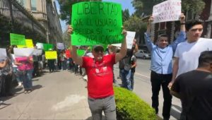 Un centenar de conductores de transporte de plataformas se manifestaron este jueves a las afueras de la Secretaría de Gobernación (Segob) para exigir el derecho de operar libremente en el Aeropuerto Internacional de la Ciudad de México (AICM), luego de que se les prohibiera recoger clientes en las inmediaciones de la terminal aérea.