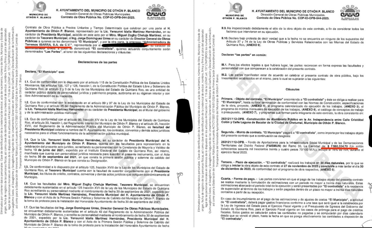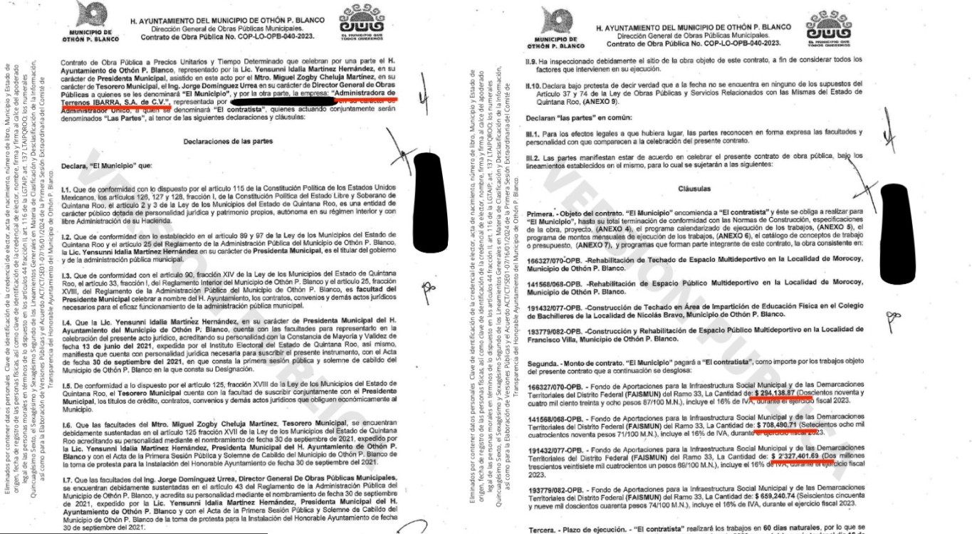 Administradora de Terrenos IBARRA SA de CV, de los hermanos Luis Adrián y Azucena Ibarra Ortega, presuntamente vinculados a Jorge Emilio González Martínez, ganan contratos por 18.8 MDP en la administración de Yensunni Martínez Hernández en Othón P. Blanco