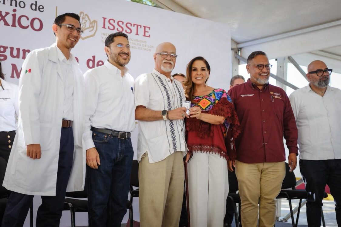 Playa del Carmen.- La gobernadora Mara Lezama Espinosa y el director general del ISSSTE, Martí Batres, encabezaron la entrega de credenciales con vigencia permanente a jubiladas, jubilados, pensionadas y pensionados, durante un evento realizado en Playa del Carmen.