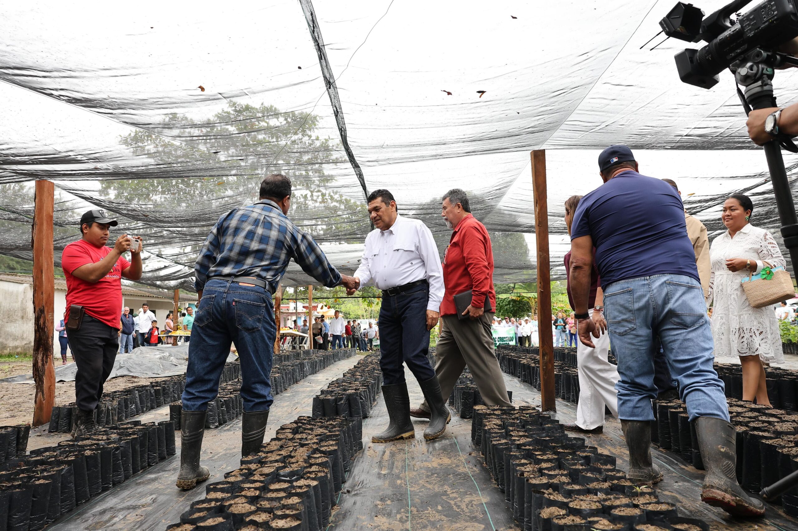 Es jueves 15 de enero y la jornada empieza bajo una ligera lluvia en la segunda sección de Yoloxóchitl. En el terreno donde se ubica el vivero de “Darle vida a nuestro campo” está reunido casi un centenar de hombres y mujeres de 8 Comunidades de Aprendizaje pertenecientes al programa diseñado “para ampliar la vida del planeta”. El motivo de la alegría de las familias rurales es la visita del Gobernador, quien realiza una supervisión técnica para conocer los avances del programa en la zona.