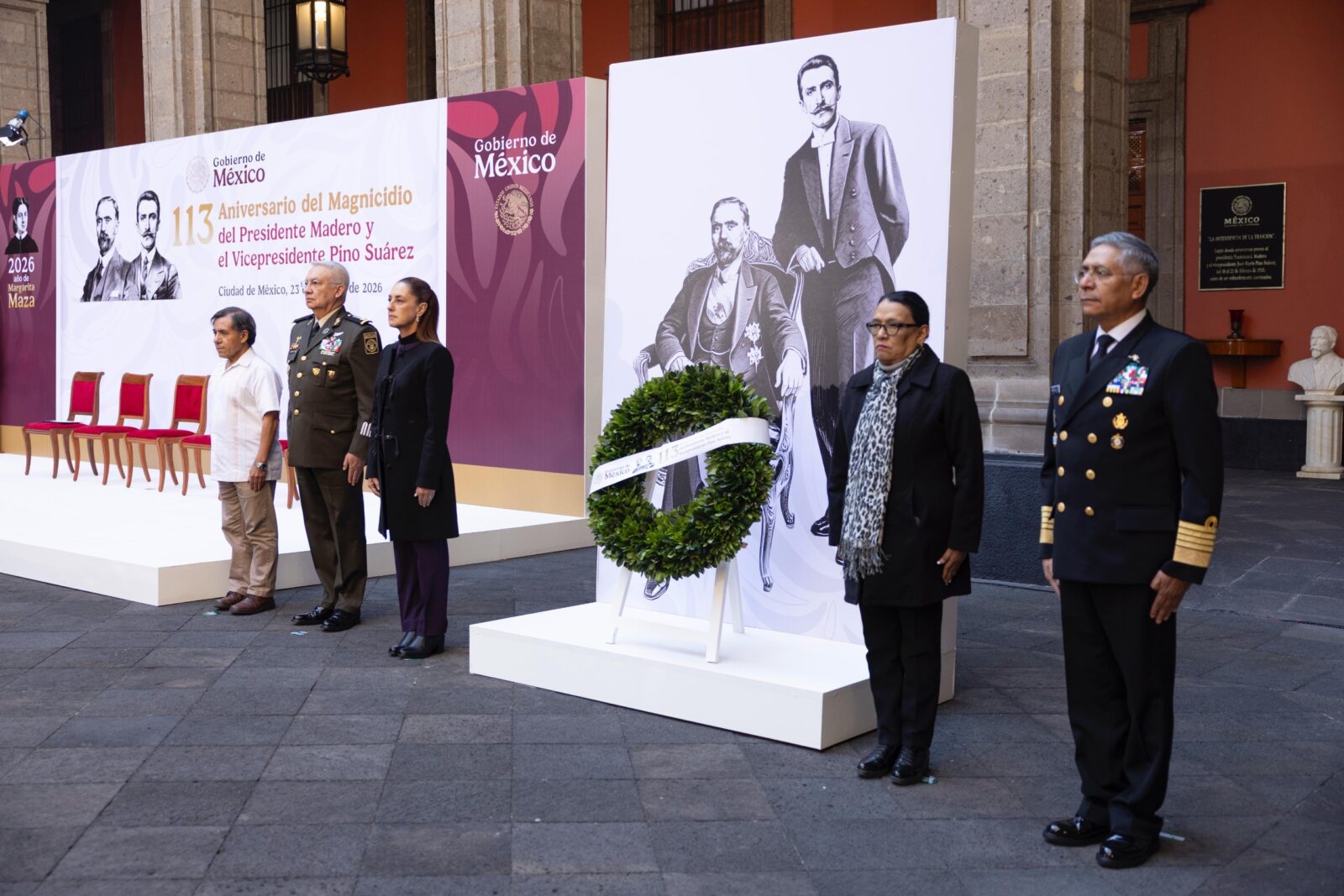 En un acto cargado de simbolismo histórico y político, la presidenta de México, , encabezó en el Patio de Honor de Palacio Nacional la ceremonia por el 113 aniversario del magnicidio de y , figuras centrales de la Revolución Mexicana y del primer gobierno democrático del siglo XX.