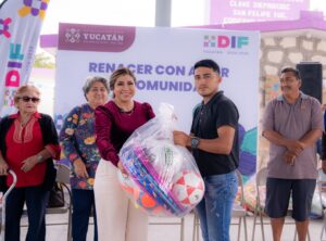 Como parte de las acciones que impulsa el Gobierno del Estado para fortalecer el bienestar comunitario y promover entornos más saludables e inclusivos, el Sistema DIF Yucatán realizó la jornada “Renacer con Amor en Comunidad” en la Escuela Primaria “José María Morelos y Pavón”, en el municipio de San Felipe, donde se entregaron apoyos deportivos y aparatos funcionales a beneficiarias y beneficiarios de la localidad.