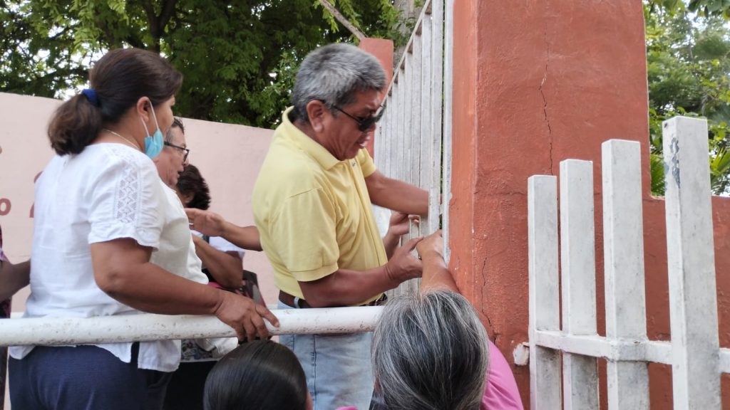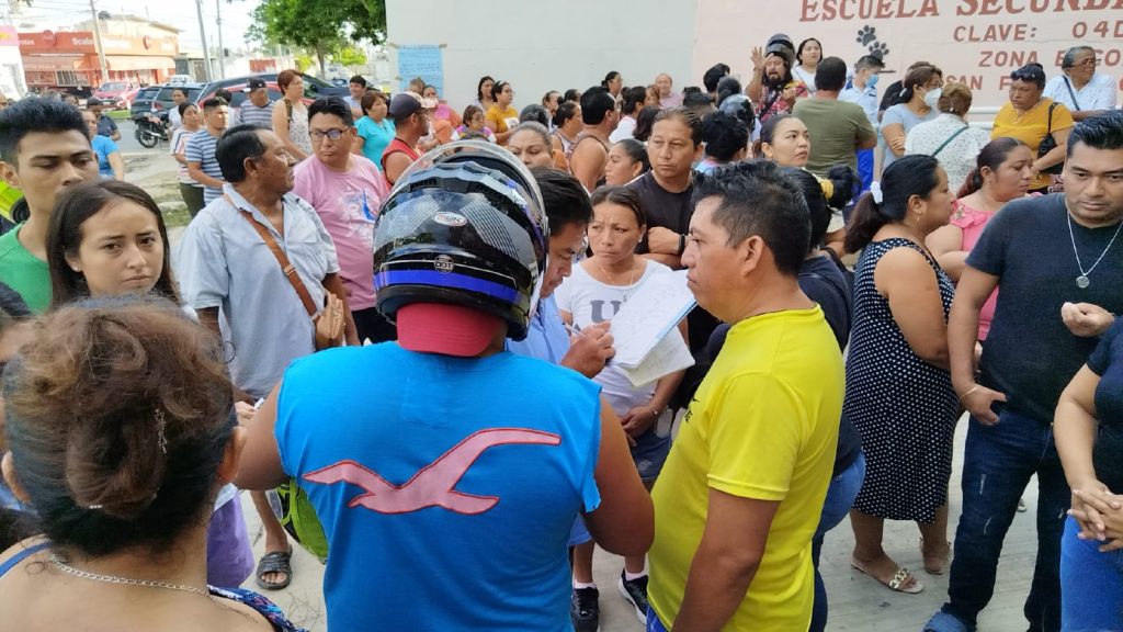 La situación se torno un poco ríspida generándose algunos disturbios en la técnica #27 de Campeche, cuando un padre de familia intento abrir la reja entre jalones y empujones.