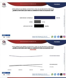 En el PAN la preferencia la lleva Erik Rihani González con 56.3.