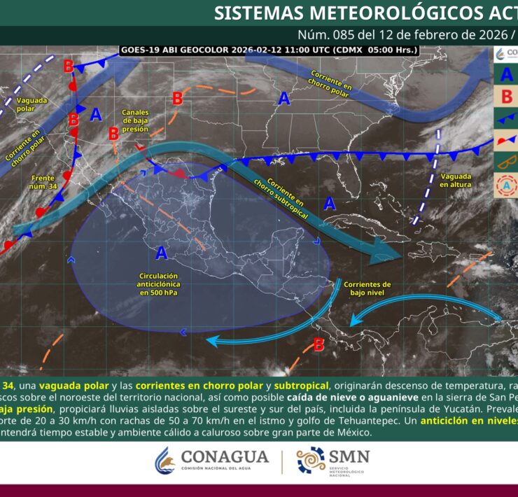 Asimismo, se prevé viento de componente norte con rachas de 40 a 60 km/h en el litoral de Tamaulipas, Veracruz, Tabasco y Campeche. La corriente en chorro subtropical producirá rachas de viento de 40 a 60 km/h con posibles tolvaneras en zonas de la Mesa del Norte y Mesa Central.