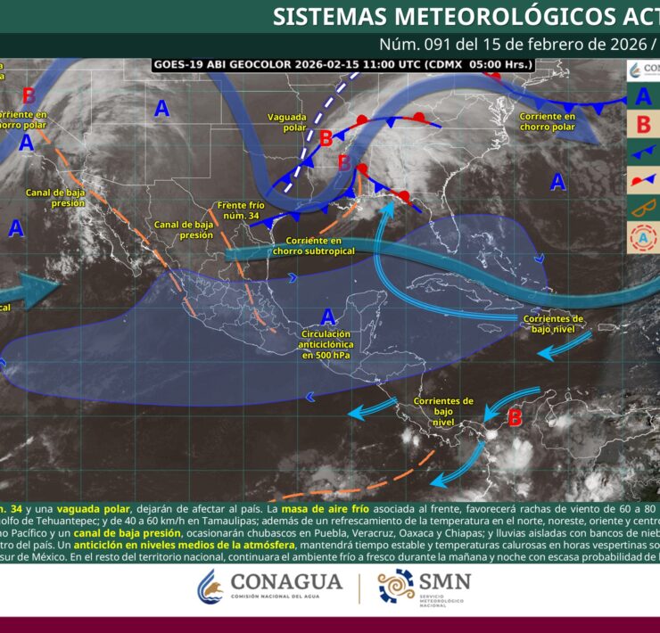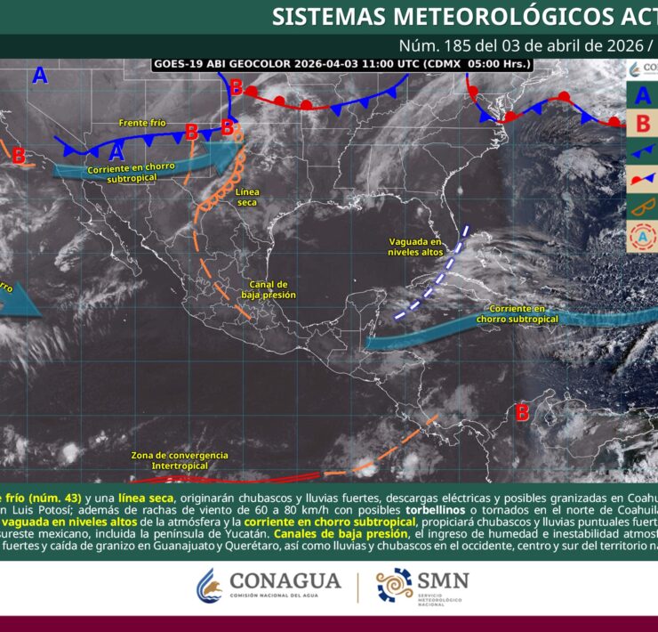 Lluvias aisladas (0.1 a 5 mm): Sonora, San Luis Potosí, Querétaro, Guanajuato, Jalisco y Colima.