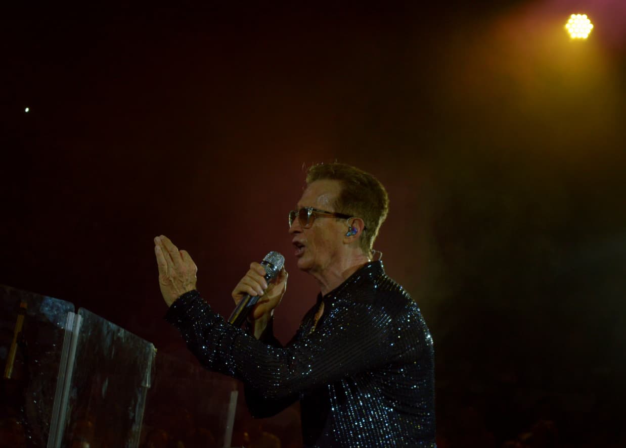 Mientras las luces danzaban en tonos azules y dorados, la crónica se volvía canción: “Quiero dormir cansado, para no pensar en ti…” resonó como un eco que conectaba generaciones. Parejas abrazadas, amigos coreando y hasta niños curiosos se dejaban llevar por los estribillos que alguna vez marcaron la radio de sus padres.