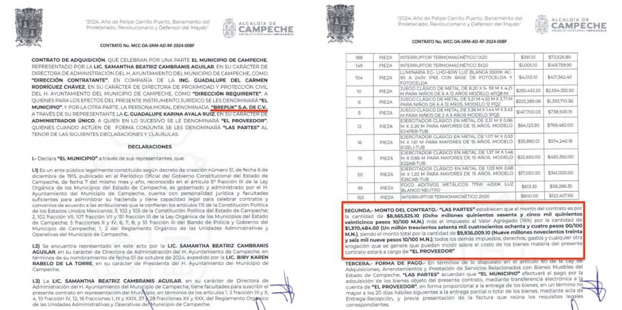 Es decir, en 12 contratos, Brepuk SA de CV le ha facturado a la Ayuntamiento de Campeche, la suma de $30,556,516.99 pesos.