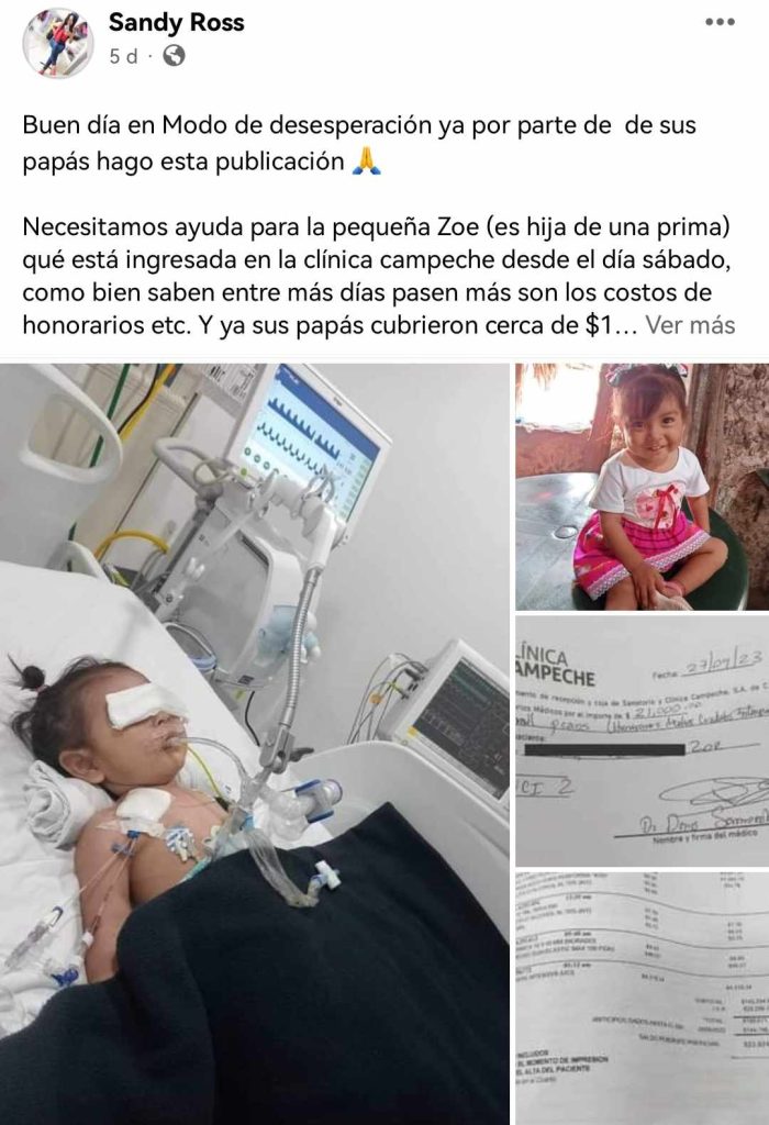 La pequeña fue ingresada a conocida clínica el pasado sábado, mientras familiares solicitaron ayuda en redes sociales. Esto por los gastos que se generaban con el paso de los días.
