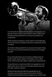 Fallece Willie Colón: La salsa pierde a una leyenda histórica