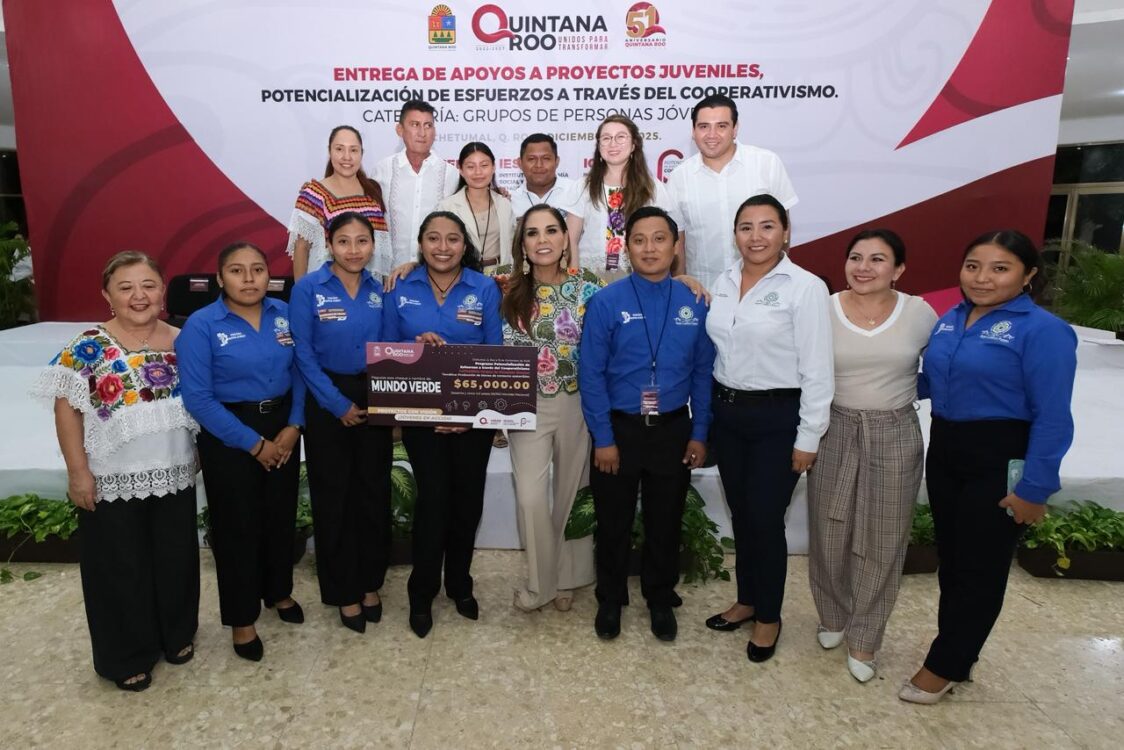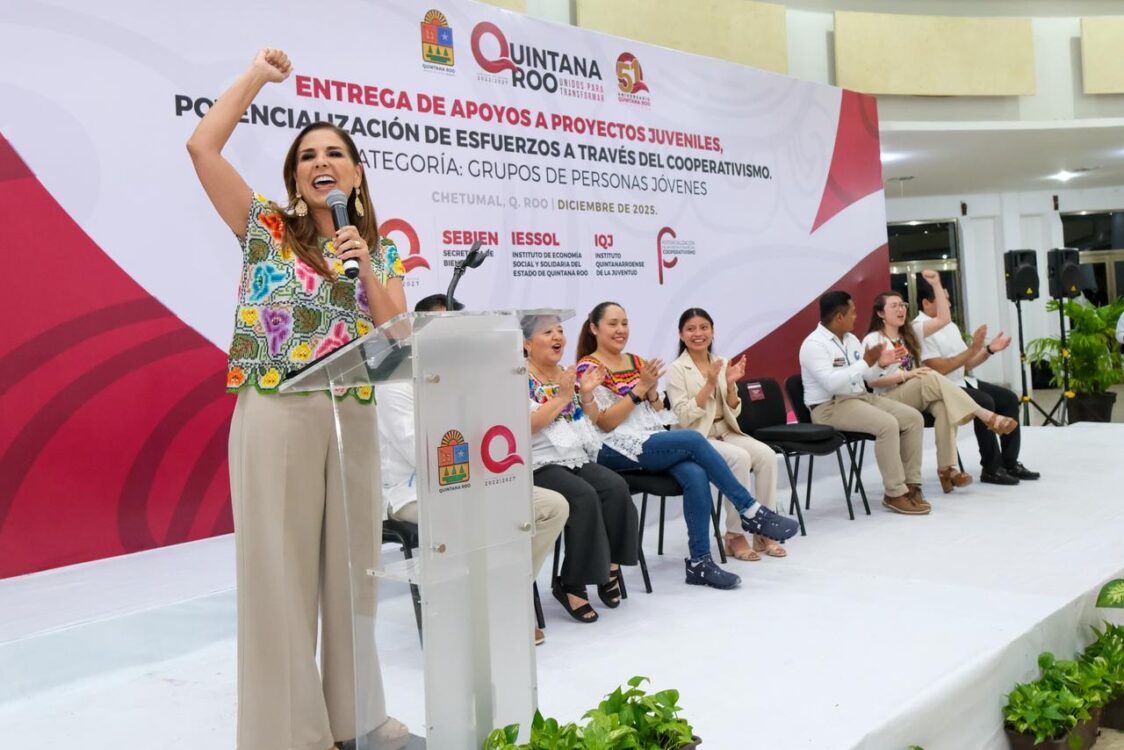 Chetumal.- La gobernadora Mara Lezama Espinosa refrendó el compromiso de su administración con las juventudes quintanarroenses, al encabezar la presentación y entrega de apoyos a participantes en la Convocatoria para Grupos Sociales de Personas Jóvenes del Programa “Potencialización de Esfuerzos a través del Cooperativismo”, una acción que las y los coloca en el centro del desarrollo económico y social del Estado, reconociéndolos como agentes clave de transformación.