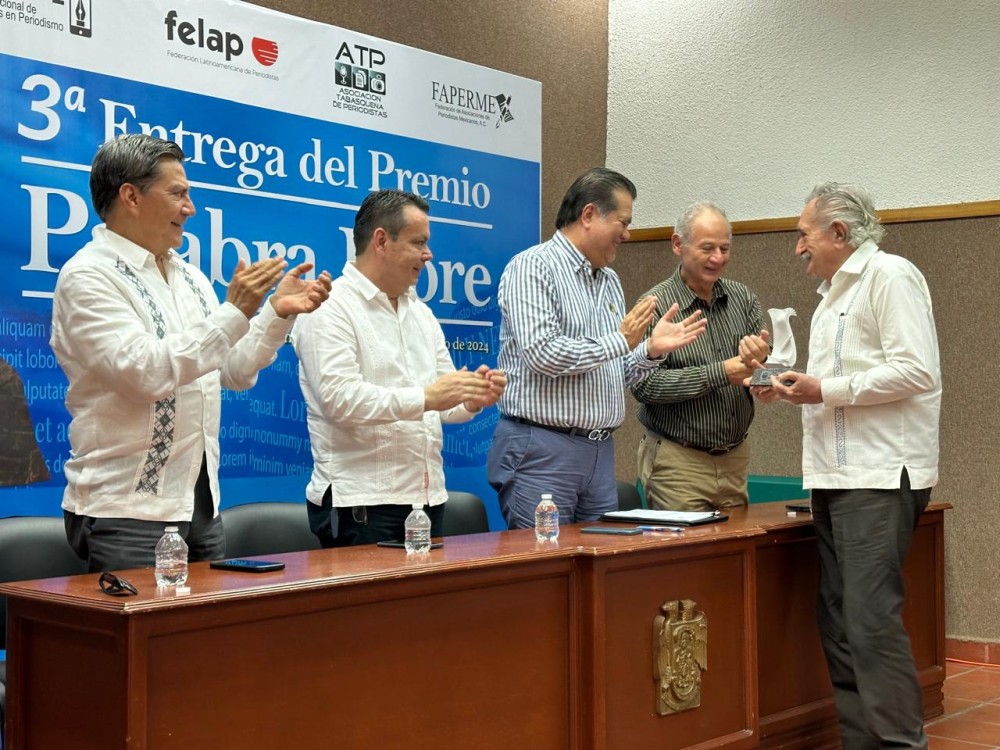 En el marco del “Día de la Libertad de Expresión”, galardonan a cuatro periodistas con el premio “Palabra Libre” 2024, que otorga la Asociación Tabasqueña de Periodistas (ATP).