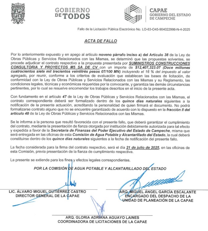 Lo más extraño, es que uno de los socios de la empresa, Marco Magdiel Hernández Cruz, como persona física, también obtuvo la obra de rehabilitación y ampliación del sistema de distribución y almacenamiento de agua potable en la localidad de Pedro Baranda, en Candelaria, por un monto de $9,600,454.61 pesos. Por los cuatro contratos, el grupo facturó a CAPAE la suma de 42 millones 223 mil 645.95 pesos.