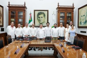 El Gobernador Joaquín Díaz Mena encabezó una reunión con representantes de Banco Santander con el objetivo de impulsar proyectos estratégicos en la entidad, entre los que se incluyen la ampliación y modernización del Puerto de Altura de Progreso, Polos de Bienestar y el Anillo Metropolitano de Mérida, así como el apoyo a jóvenes, mujeres y pymes.