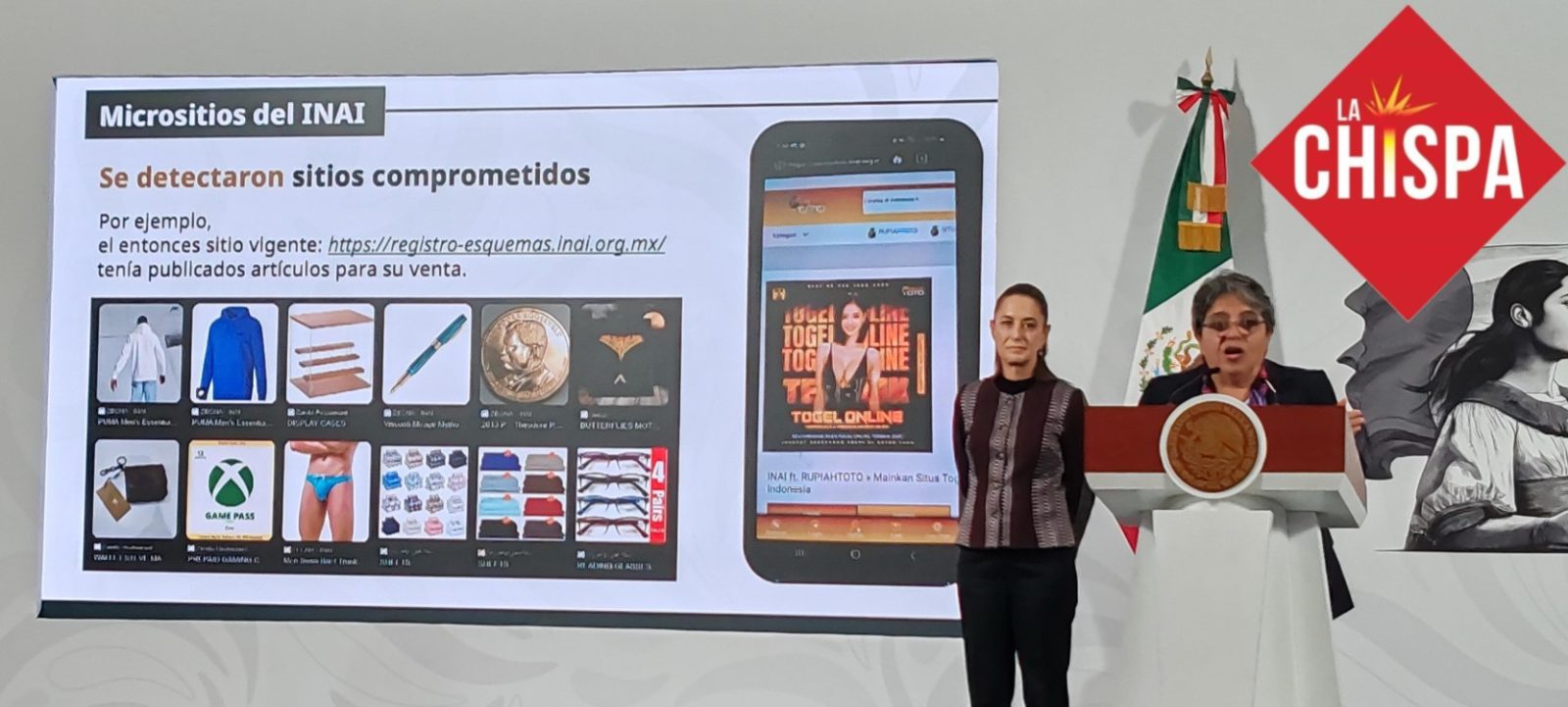 Como parte de la exposición, la titular de la Secretaría Anticorrupción mostró ejemplos de ligas activas que aún redirigen a esos sitios ajenos al propósito de la plataforma, lo que, aseguró, refleja el nivel de vulnerabilidad en que se encontraba el sistema administrado por el extinto INAI.