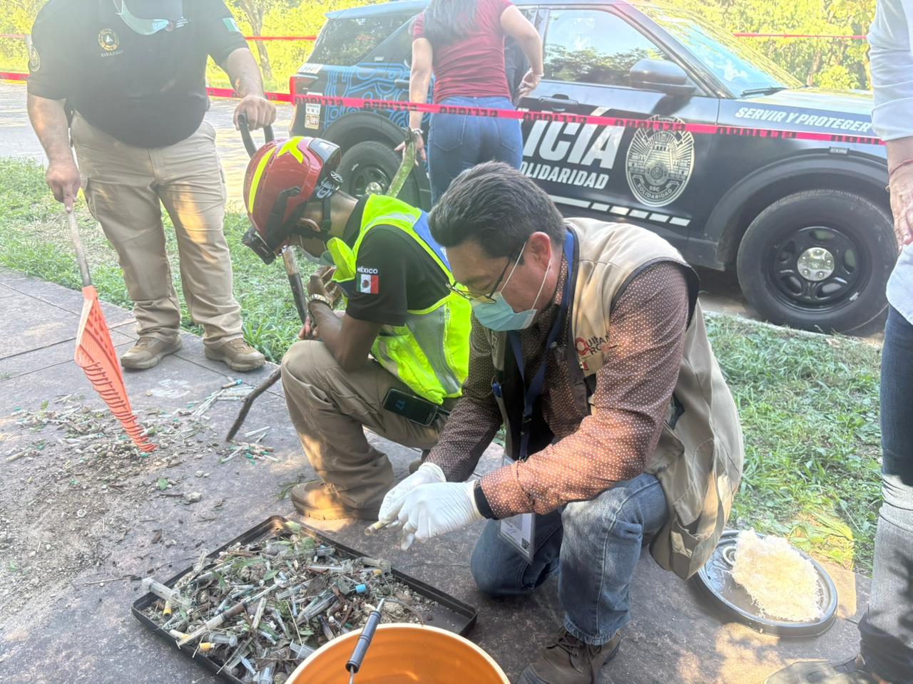 El sitio se localizó en un terreno baldío en las inmediaciones de Paseo Central y avenida Petempich, en donde se realizó el levantamiento y traslado de cerca de 4 kg de residuos punzocortantes, mismos que fueron asegurados conforme a la normatividad vigente y trasladados al Hospital General de Playa del Carmen para su confinamiento en el área de Residuos Peligrosos Biológico-Infecciosos (RPBI), bajo los protocolos correspondientes.