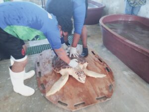 Debido a un cuadro de varamiento, fue trasladada al Centro de Rehabilitación del Cetmar, donde recibió atención especializada tras ser diagnosticada con obstrucción intestinal, desnutrición y deshidratación, condiciones que comprometían seriamente su salud y supervivencia.